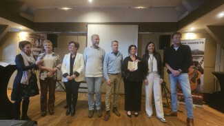 De genomineerden voor Beste Boek Achterhoek en Liemers 2024 met in het midden juryvoorzitter Gerwin Nijkamp en rechts van hem de winnaars van 2024 en 2023.