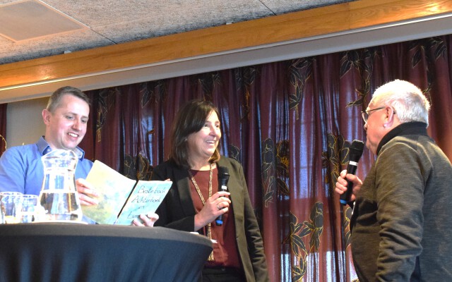 Op ’t Waeketreffen was er ook aandacht voor streektaalschrijfsels: het kadobuukske van de Waeke, Flonkergood, staat er vol mee. Drie inzenders droegen hun Flonkergood-verhaal live voor in Den Bremer. Wethouder Antoon Peppelman van gemeente Bronckhorst nam het eerste exemplaar van Flonkergood 2024 in ontvangst.